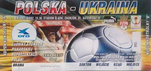 Poland - Ukraine match ticket (6.10.2001)