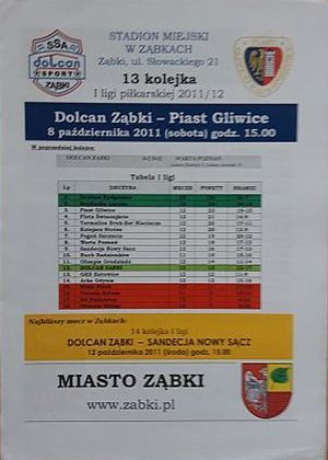 Dolcan Ząbki - Piast Gliwice I liga official programme (08.10.2011)