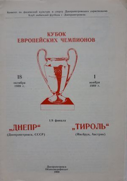 Dnipro Dnipropetrovsk - Tirol Innsbruck Champions Cup official programme (18.10.1989)