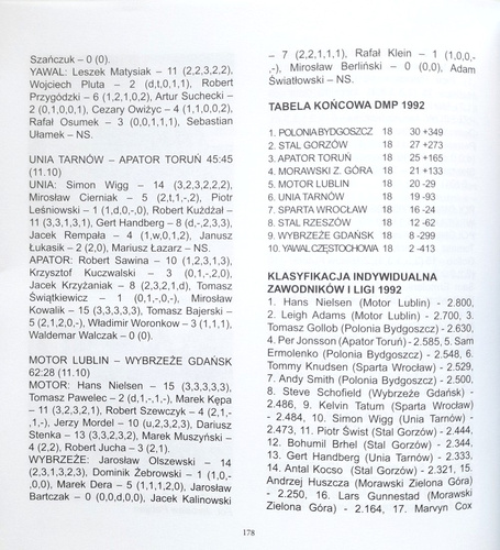 - The story of Polish speedway I and II league 1991-92: all results, matches and statistics.
